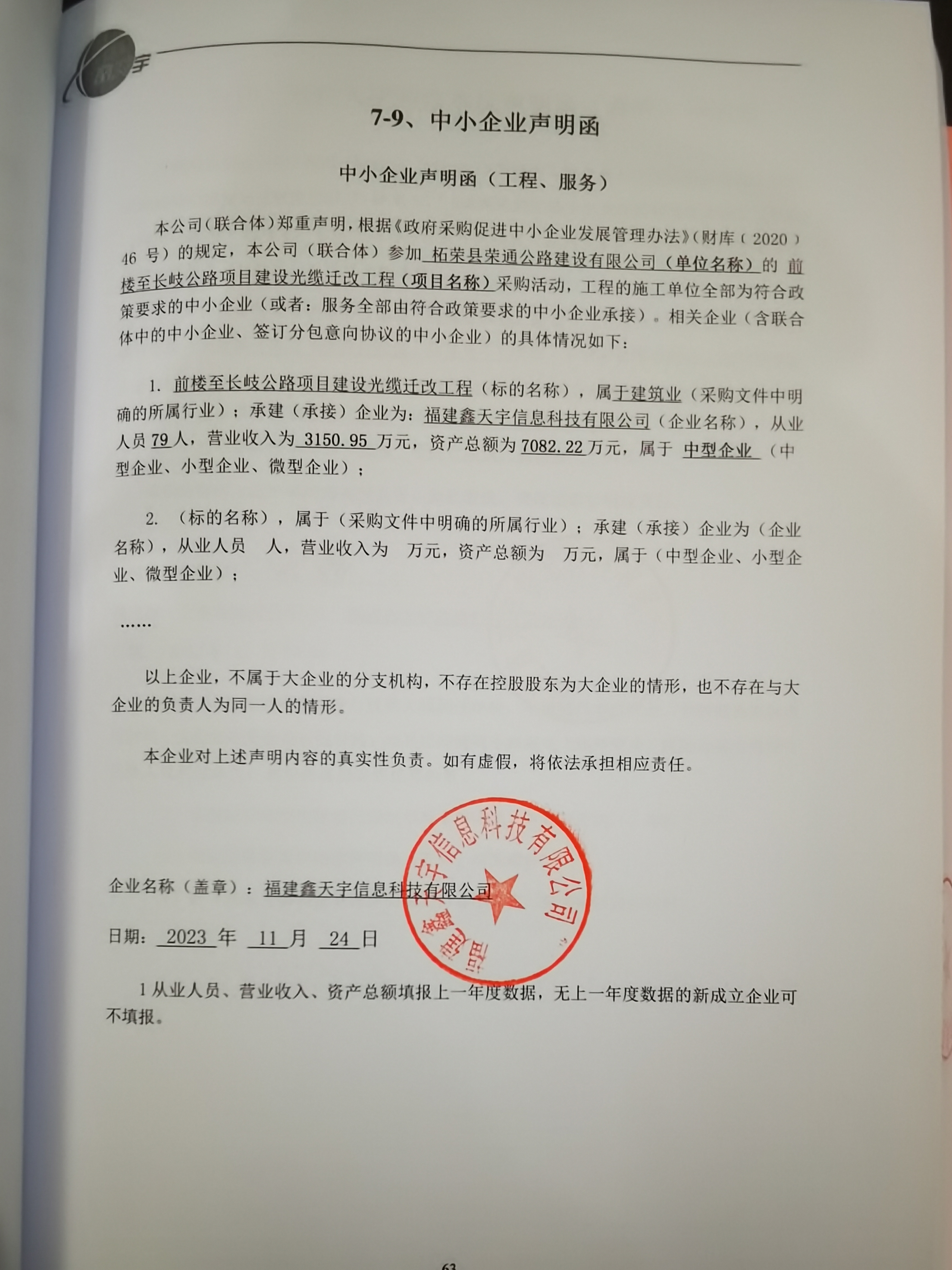 二、項目名稱:前樓至長岐公路項目建設(shè)光纜遷改工程