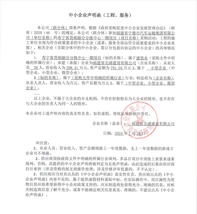 供應商名稱:福建省北浦建設有限公司