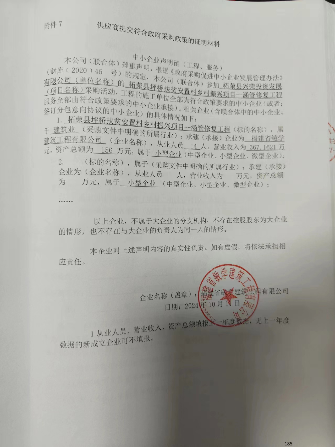 柘榮縣坪橋扶貧安置村鄉(xiāng)村振興項(xiàng)目--涵管修復(fù)工程 成交公告
