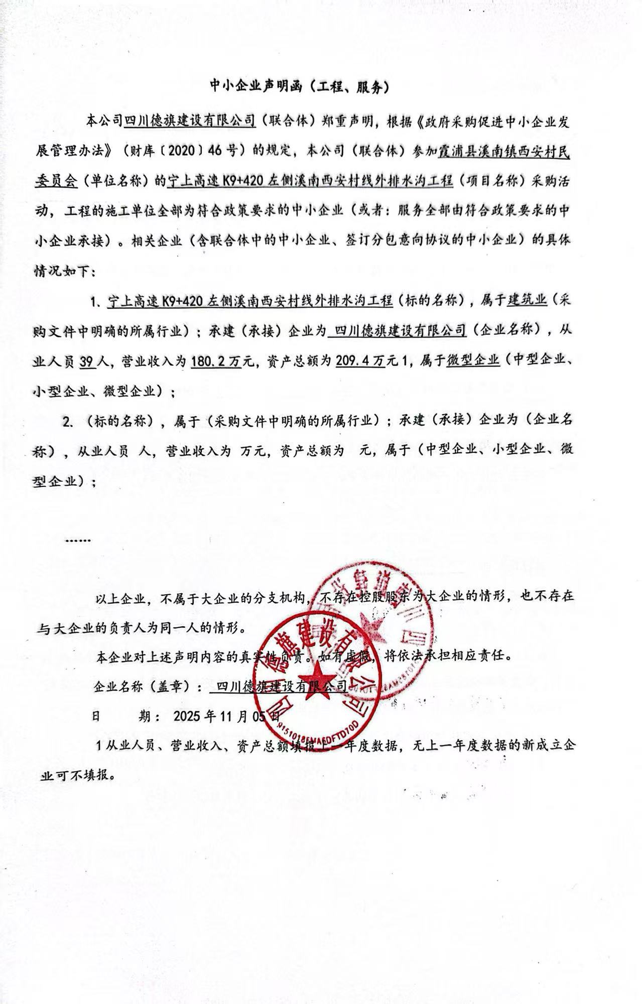 二、項(xiàng)目名稱:寧上高速K9+420左側(cè)溪南西安村線外排水溝工程