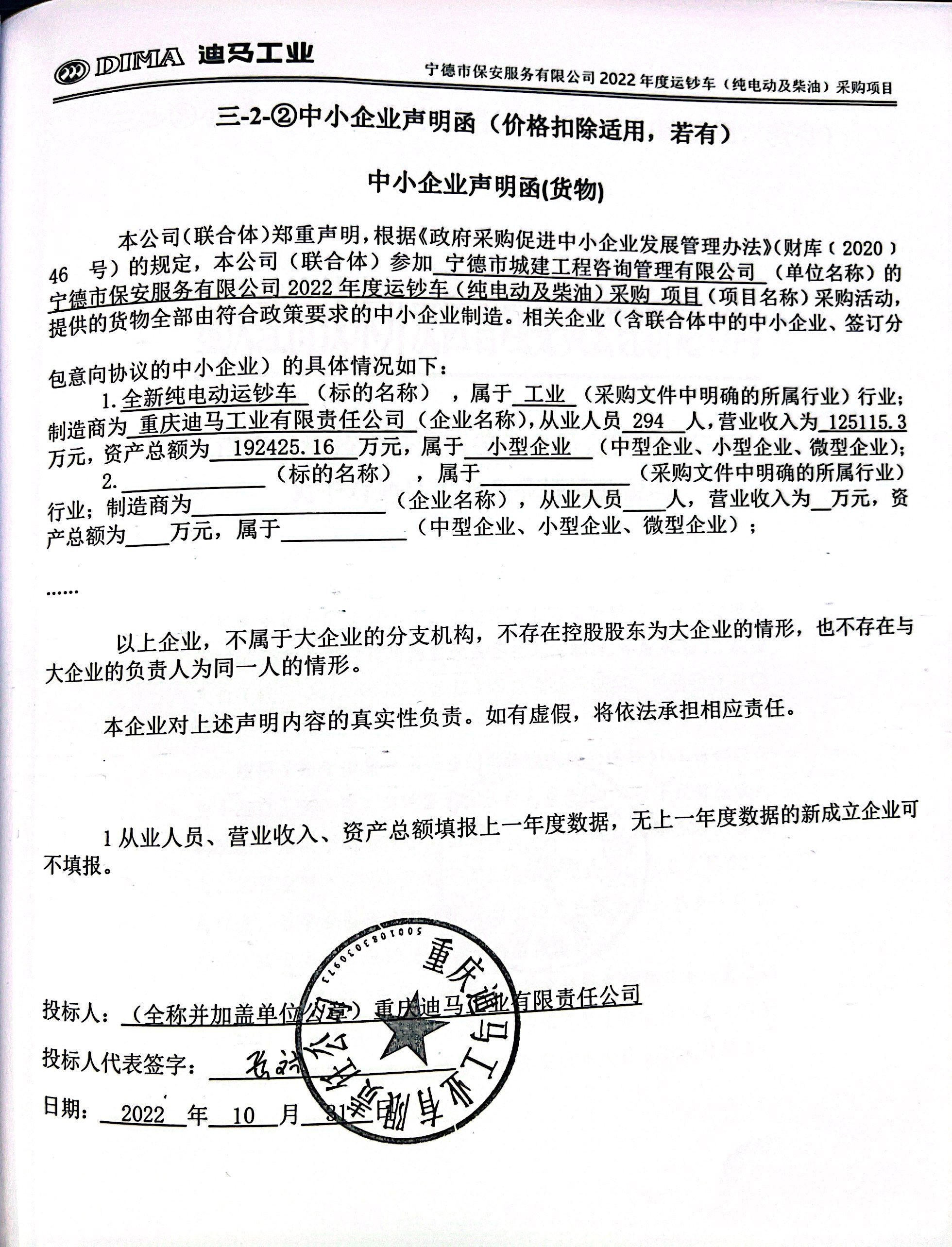 供應商名稱:重慶迪馬工業(yè)有限責任公司(包1)