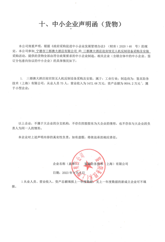 二、項目名稱:三都澳大酒店迎賓館無人機反制設備采購及安裝