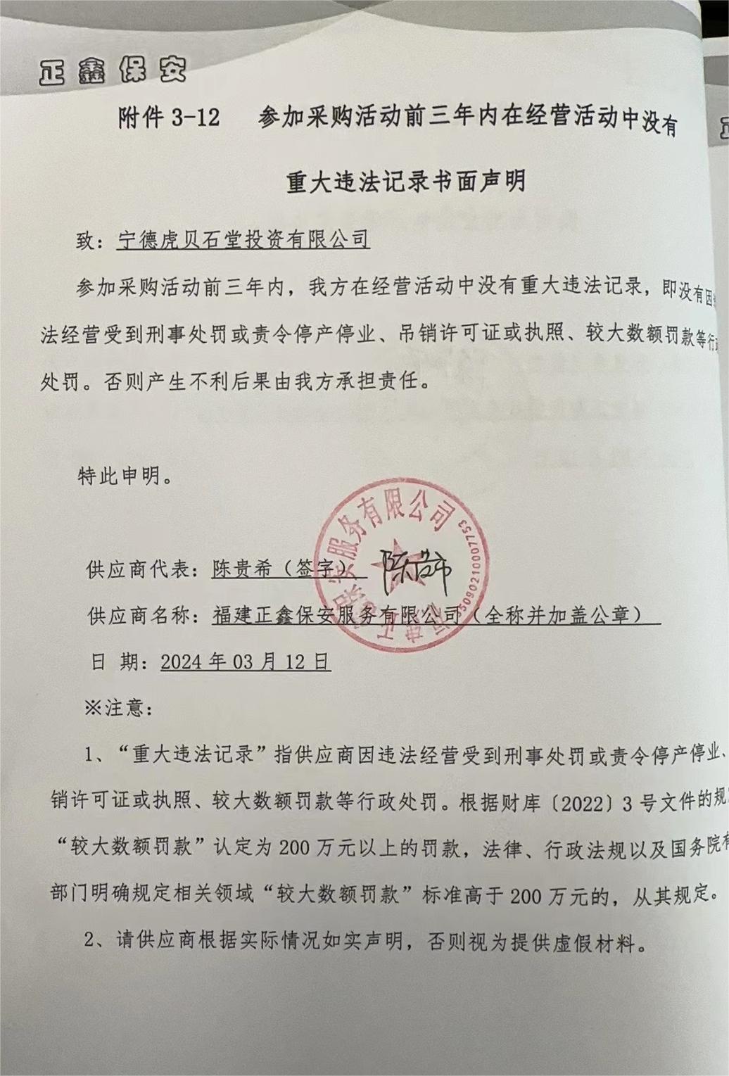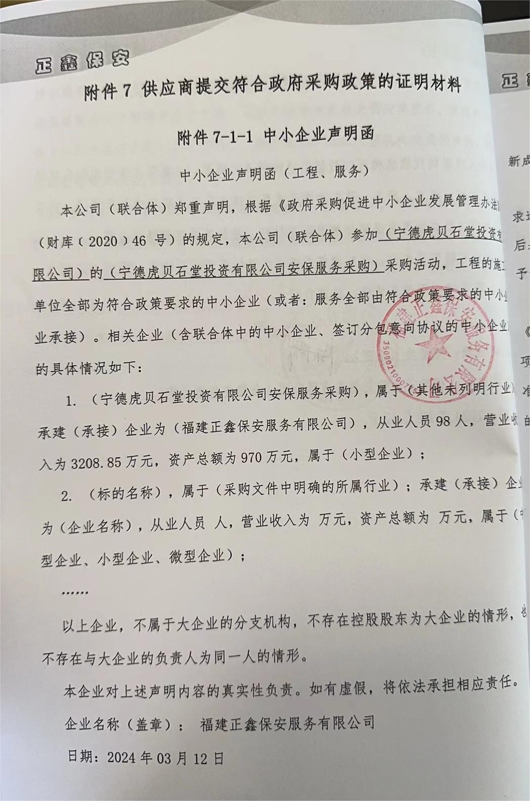二、項(xiàng)目名稱(chēng):寧德虎貝石堂投資有限公司安保服務(wù)采購(gòu)