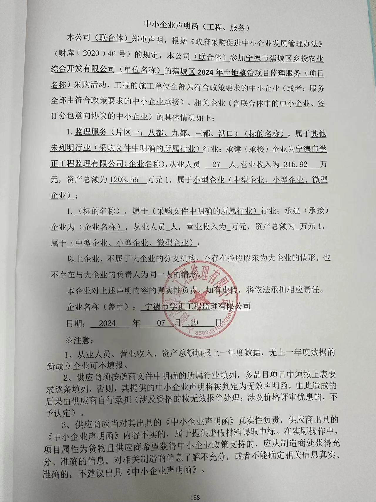 供應商名稱:寧德市學正工程監(jiān)理有限公司