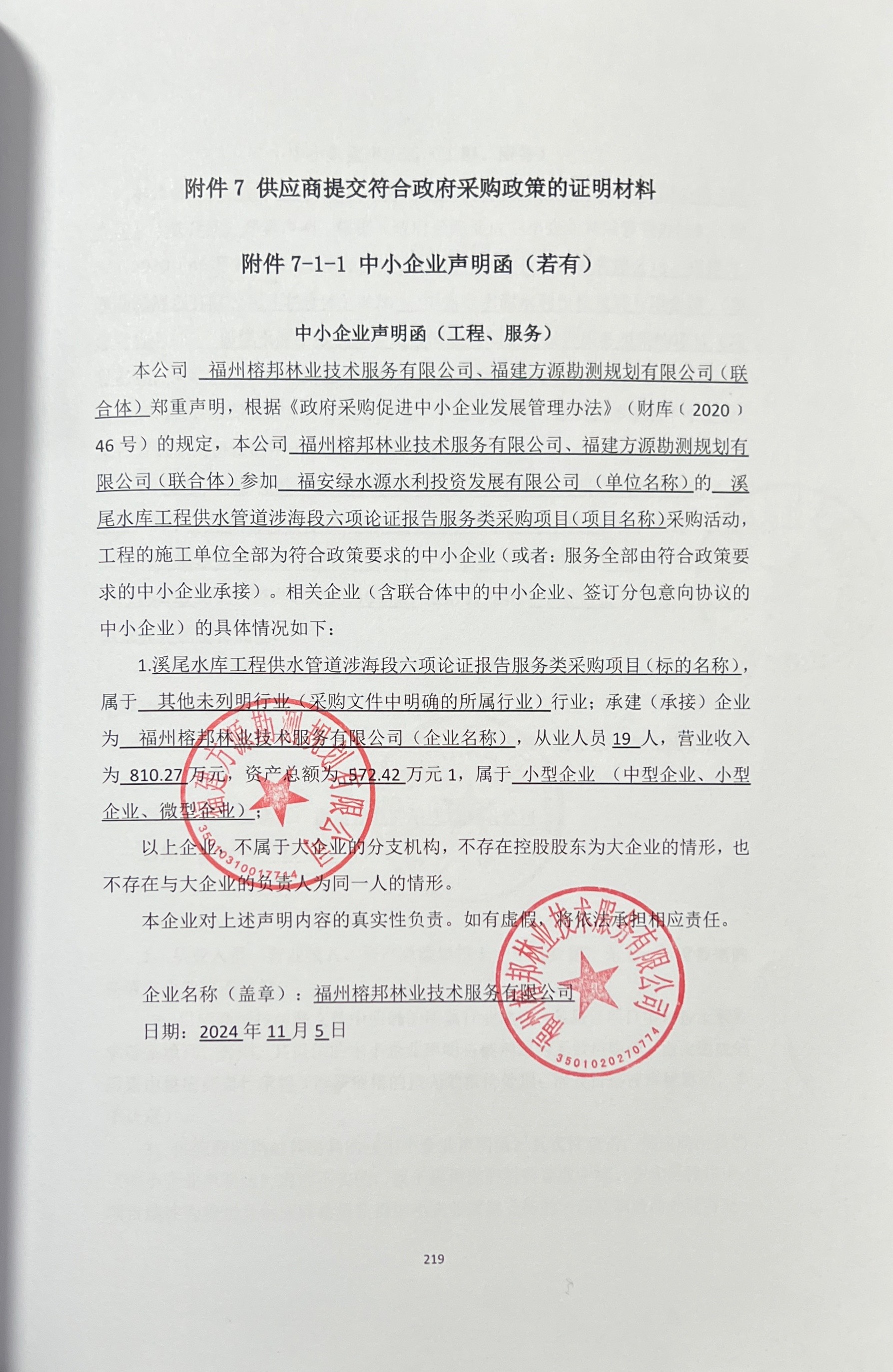 溪尾水庫工程供水管道涉海段六項論證報告服務(wù)類采購項目 |