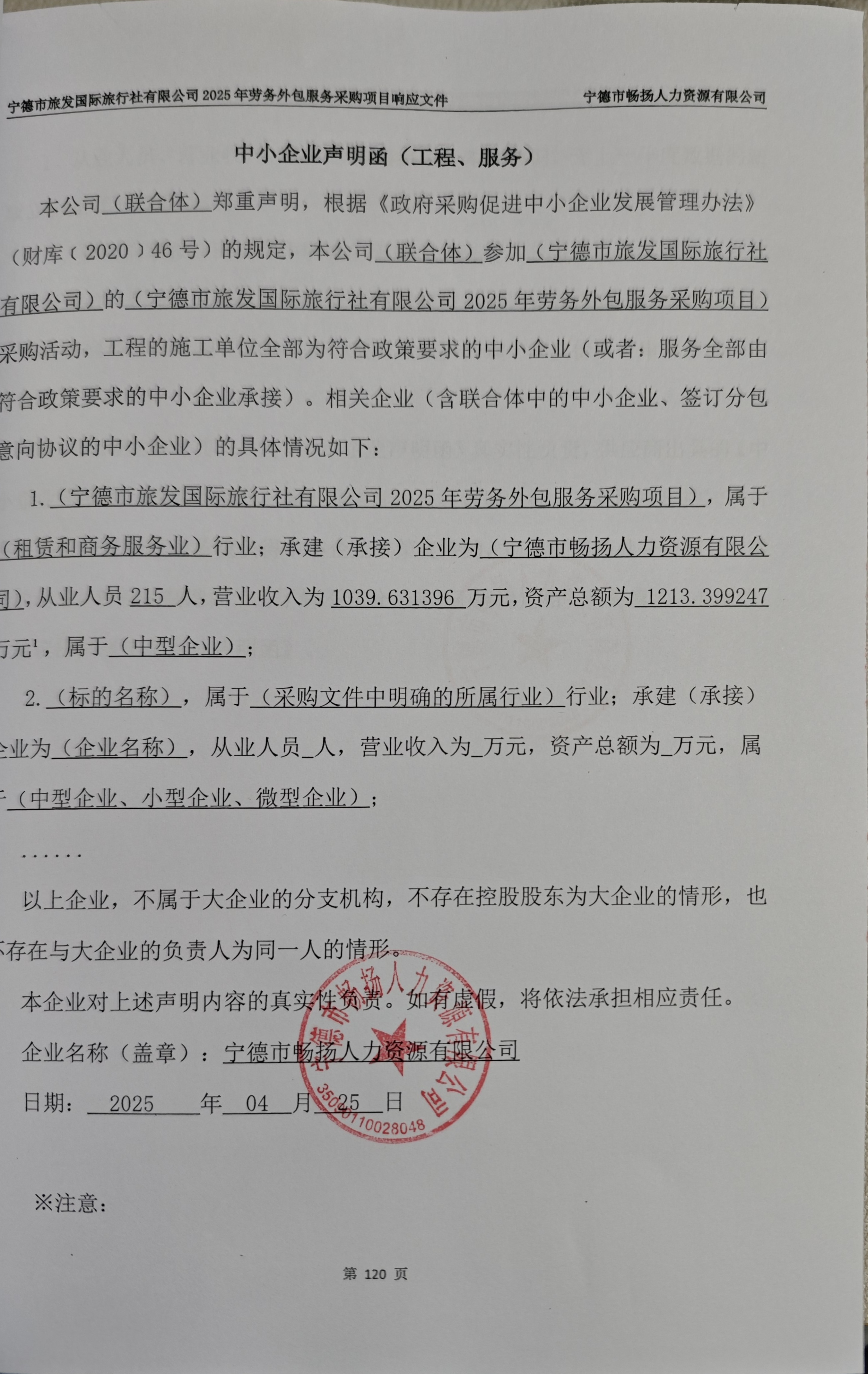 寧德市旅發(fā)國際旅行社有限公司2025年勞務(wù)外包服務(wù) |