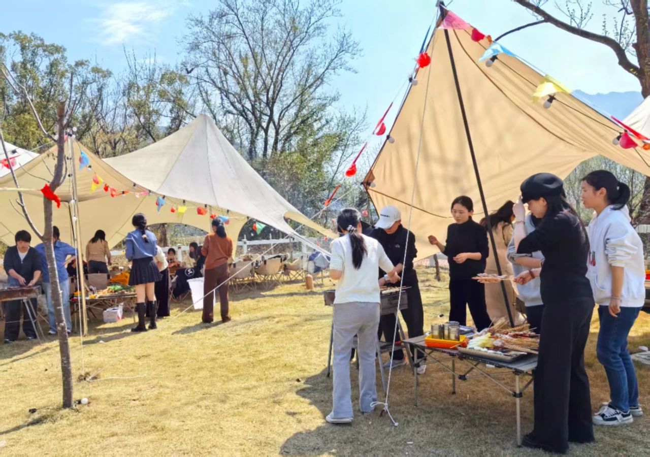 午后活動聚焦團(tuán)隊協(xié)作與身心放松。在霍童鎮(zhèn)文湖村戶外營地,女職工們開展分組燒烤。大家分工協(xié)作,有的架起烤爐生火備炭,有的巧手翻動肉串蔬菜,有的調(diào)制醬料搭配美食,現(xiàn)場炊煙裊裊,香氣四溢,平日嚴(yán)謹(jǐn)?shù)穆殘鼍⒃诖稛熤芯`放生活智慧。